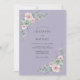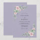 En mjuk lavendelfärg bakgrund inramar ömtåliga akvarellblommor i rosafärgad och dämpad grön. Accenter av lavendelkvistar och suckulenter skapar en luftig, romantisk känsla, perfekt för en förtrollande tillställning. Denna design frammanar en mjuk, naturlig elegans.