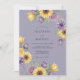 En mjuk lavendelbakgrund inramar en fantasifull kaskad av gula solrosor, djupvioletta blommor och blekgula tulpaner. Denna design frammanar en charmig, målerisk känsla, perfekt för en romantisk landsbygdsaffär. Konsten blandar rustika element med en touch av elegans.