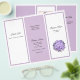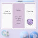 Trefaldig broschyr mall i lavendel och vit med lila hydrangea blommor. Vik in i tredjedel och lägg till ett foto av dig själv i den mittersta inre sektionen. Alternerande vita och lavendelfärgade paneler på båda sidor av prisvärd flygbladspapper låter dig anpassa varje område med information om din verksamhet.