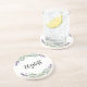 En pappersunderlägg för en boho, fransk lantern stil fest. En chic vit bakgrund dekorerad med lavendelblommor och eukalyptus grönska. Personifiera och lägg till ett namn.