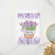 Tack-kort med lavendelblommor i en korg med akvarell lavendelblommor och gröna gräs. Ta aldrig slut på dessa tacksamhetskort för alla tillfällen. Ha några till hands.