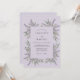 Denna design har en lugn lavendelfärgad bakgrund prydd med ömtåliga kvistar doftande lavendel och mjuk salvia-grön lövverk. De botaniska elementen skapar ett organiskt arrangemang som frammanar den fridfulla atmosfären på den franska landsbygden. Denna palett av ljust lila och dämpad grön skapar en tidlös, aromatisk estetik perfekt för en sommar- eller vårfest.