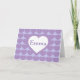 Det här kortet har ett upprepande mönster av lavendelfärgade hjärtan som överlagras av ett stort vitt hjärta med en lavendelfärgad kontur och en textmall. Kortet är tomt på insidan och väntar på dina handskrivna känslor eller anpassad text.