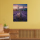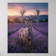 En graciös lavendelhjort står fridfullt i ett drömlikt fält av lila blommor i skymningen. Realistisk hjortanatomi smälter samman med doftande lavendelblommor, silverstjälkar och eleganta blommiga horn för en lugn fantasisk look. Rullande blomrader, mjuk kvällsdimma, avlägsna kullar och svagande solnedgångsljus skapar en lugnande lantlig atmosfär. Denna raffinerade design ger mjukhet, skönhet och delikat lyx till sovrum, välbefinnande-utrymmen, feminina interiörer eller genomtänkta presenter. Perfekt för hjortälskare, blomsamlare och alla som älskar fredliga botaniska naturscener.