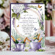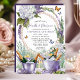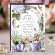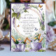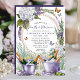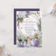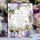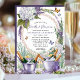 Fira med stil med denna bröllopsfestinbjudan "Pärlor och Prosecco", med en vacker trädgårdsinspirerad design med lavendelblommor, frodig grönska och en pärlkedja som ramar in texten. Isaskar fyllda med champagne och fladdrande fjärilar ger en festlig touch, vilket gör denna inbjudan perfekt för en elegant utomhusbröllopsfest. Den fräscha färgpaletten och lyxiga elementen skapar en sofistikerad och glädjefylld atmosfär.