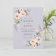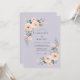 Denna design har en mjuk lavendelfärgad bakgrund som accentueras av ömtåliga vattenfärgblommor i nyanser av persika och aprikos. Eleganta rosor och frodig grön lövverk skapar en romantisk atmosfär perfekt för en säsongsbetonad tillställning. Den dämpade färgpaletten ger en sofistikerad och eterisk estetik.