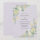 En mjuk lavendelfärgad bakgrund utgör grunden för denna design, som accentueras av känsliga akvarellblommor. Paletten omfattar dämpad salvia grön bladverk tillsammans med krämiga vita rosor och blekgula tulpaner. Dessa konstnärliga illustrationer skapar en lugn och romantisk stämning perfekt för ett säsongsbetonat vårtema.