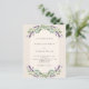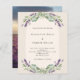 En beige bakgrund som dekoreras med lila lavender-blommor, eukalyptus greenery och en arch ram. Anpassa och namn och detaljer. Tillbaka: Anpassa och lägg till ditt foto. 1 lakan = 1 inbjudan tryckt kant till kant.