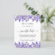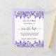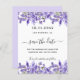En modern och elegant Spara datum för ett bröllop. En vit bakgrund som dekoreras med vattenfärgade lavender-blommor. Anpassa och lägg till ett datum och din namn. Texten: Spara datumet skrivs med ett stort trendig-handskript i stil. Bakåt: violett bakgrund 1 lakan = 1 sparar datumet som skrivs ut kant till kant.