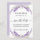 En modern och elegant Spara datum för ett bröllop. En vit bakgrund som dekoreras med vattenfärgade lavender-blommor. Anpassa och lägg till ett datum och din namn. Texten: Spara datumet skrivs med ett stort trendig-handskript i stil. Bakåt: violett bakgrund