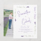 Spara datumet i fotot. Vit bakgrund. Modern. Bröllop webbplats. Lavendeltext. Lavendelns blommigt sparar datumet.
