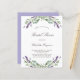 En vit bakgrund som dekoreras med lavender-blommor och eukalyptus grey. Anpassa och ett namn och detaljer. Baksida: lavender, violett färgad bakgrund. 1 lakan = 1 inbjudan tryckt kant till kant.