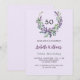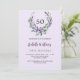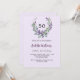 Bakgrund till Lilac-färgaden. En blommigt krans av lavendelblommor och vattenfärgade eukalyptus greenery. Anpassa och lägg till information om namn, ålder och party.