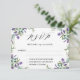 En OSA kort som är dekorerad med lavender-blommor och grön. Vit bakgrund. Anpassa och lägg till svaret efter datum. Bakåt: Bakgrund för lavender-färgaden.