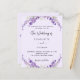 En mjuk violett bakgrund som dekoreras med vattenfärgade lavender-blommor Personalize och din namn och detaljer. Baksida: lavender, violett färgad, stor blommigt bouquet. 1 lakan = 1 inbjudan tryckt kant till kant.