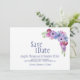 Berätta för dina vänner och nära och kära om dina framtida bröllop-planer med det här elegant lavender och blått blommigt bröllop spara-till-date-kortet.