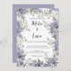 De här lavendelblåt- och mintblommorna är perfekt för vår eller sommar bröllop. Den romantiska och elegant blommigten har vattenfärgen lavender lilac-blommor med en boho land-trädgårdskåra. Anpassa den här designen med information om meddelande och personlig. Alla designer skrivs ut.