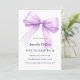 A white background, decorated with a lavender colored large bow. Personalize and add a name and party details.