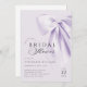 Lavender Bow Inbjudningskort för möhippan. Den här sofistikerade inbjudan innehåller ett klassiskt lila-båge och ett romantiskt handskrivet skript, perfekt för ett trendig och en coquette-möhippa.