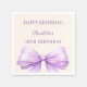 A soft ivory background color. Decorated with a large lavender colored bow. Personalize and add the name and date. Text: Happy Birthday!