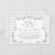 Featuring a heartwarming illustration of a mother and baby goose adorned with bows, floating balloons, and surrounded by soft florals and greenery, this design is the perfect blend of sweet, playful, and elegant. Set against soft purple gingham pattern, with hand-painted elements and delicate ribbon accents, this insert card is ideal for a coquette-inspired or storybook-style baby shower.