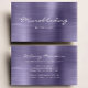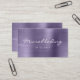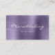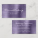 This elegant modern business card features a background image of lavender purple faux brushed metal foil. The word "Microblading" appears on the front of the card in white handwriting script. Personalize it with your name in white sans serif font and your contact information on the back.
