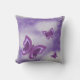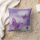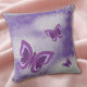 Den här söt kudden har tre lila-, lavender- och violett färgad-butterfly-bilder mot en grumlig, grym, passande bakgrund. Kuddens andra sida har bakgrunden, men inte fjärilarna. Det är en intressant, reversibel kudde och passar särskilt för en liten flickas sovrum.