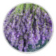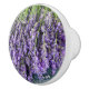 En keramisk knopp som innehåller ett foto av lavenderstjälkar. Lila Tema!