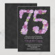 Lila blommigt 75:e Födelsedagsfest inbjudan för dam med chalkboard-effektbakgrund