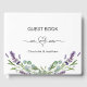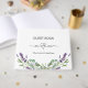 En vit snyggt som dekoreras med lavender- blommigtar och eukalyptus greenery. Mr och Mrs med hjärta. Anpassa och lägg till datum för namn och bröllop.