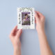 Observera att det här Spara datumet är pappert och mycket tunt. Kuvert ingår inte. Om du vill ha tjockare Spara datumkort (samma design) kan du besöka vår butik. Ett modernt bröllop spara datum-fotokort. Dekoreras med laverings blommigtar, blommor och eukalyptus greenery. Anpassa och lägg till ditt foto, datum, namn.