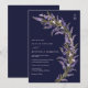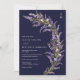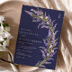 En chic fet Klassisk elegant blommigt lavender bröllop vattenfärg med monogram initialer med lila lavender botaniska stjälkar grenar och blommor, grönt och brunt blad och elegant kalligrafi på marinblått.