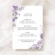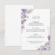 This lavender floral wedding details card features soft watercolor hydrangea artwork paired with a clean, organized layout for sharing important wedding information.