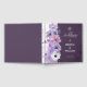 An elegant purple floral wedding guest book featuring soft watercolor flowers in lavender, blush, and white, accented with delicate botanical line art for a romantic and sophisticated look. The rich plum background and floral side border create a beautiful keepsake design, perfect for collecting heartfelt notes, signatures, and memories from your wedding guests. A lovely choice for couples creating a coordinated floral wedding décor and stationery suite.