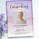The perfect celebration of life invitation - especially for someone who loves flowers and perhaps gardening. The design features a square personal photo, 6 lines of custom text and a background photo of a field of beautiful purple lavender. You can easily change this out with your own background photo . Classic yet unique - this template is so easy to personalize and will make a wonderful memorial keepsake too.
