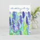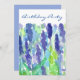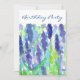 En söt blommigt födelsedagsfest inbjudan med en lavendelblomma med vattenfärg accentuerad med ljusblå och grönt nyanser.