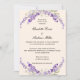 Celebrate your elegant botanical wedding with this cohesive lavender invitation. The design features hand-painted watercolor lavender sprigs forming a delicate wreath on a soft cream champagne background. It is a perfect match for couples hosting a late summer garden ceremony or a rustic fall harvest celebration.