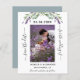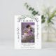 Ett modernt bröllop spara datum-fotokort. Dekoreras med laverings blommigtar, blommor och eukalyptus greenery. Anpassa och lägg till ditt foto, datum, namn.