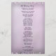 Lavender glitter bröllopsprogram. Observera att det här är en grafisk återgivning av teckningar och att det inte finns något rött glitter.