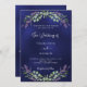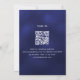 En marin blå bakgrund med lavender-blommor och eukalyptus greenery. Den blå färg är ojämn. Anpassa och namn och detaljer. Tillbaka: Lägg till webbadressen för bröllop i QR-koden för mer information och/eller OSA.