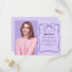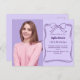 En lavendel färgad, dekorerad med en mörk lila handdragen båge och ram. Anpassa och lägg till information om foto, namn och party.