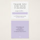 Tack för att du köpte in paket i en söt minimalistisk design med ett lila hjärta där den som förberedde paket kan skriva på namn för hand för att få en personlig beröring. Lägg till din kontaktinformation på pastelllavendeln på andra sidan av tack för ditt beställningskort. Du kan också skriva ned en rabattkod för dina kunders nästa köp.