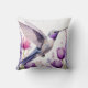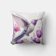 Lavender hummingbird watercolor illustration with decorative flowers.