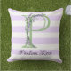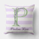 Lavender light lila white strimmor monogram kudde