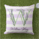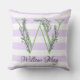 Lavender light lila white strimmor monogram kudde