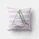Lavender light lila white strimmor monogram kudde