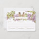 Lavender Lilac Love Bird Bröllop OSA för in responskort. Lavender och Golden Tan Design Lila Information Script Lettering och Bronze Swirls över ett Loely Lilac Gren-hölje i mjuka vår-blommar med två romantiska love birds söta sitta bredvid varandra. Vintage Bird Bröllop och speciella tillfällen Rustic Forest Vintage Bird Bröllop två Love birds Sitta på Lilac Gren med Lila Blommar. Perfekt för det romantiska vismska bröllop. Söt rustik och fullt i stollig, sådana minnen av llac buskar blåser i vår när luft är fullt av romantik och unga kärlek.
