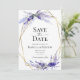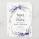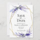 Hand målade vattenfärgen blommigt bröllop spara datum kort med lavender blommigt buquets med digital guld foil ram. Du kan anpassa texten, teckensnittet stil, färg och storlekt framför och bakom inbjudan. Det här bröllop spara datum-kortet är en del av en fullständig uppsättning bröllop med matchande kontorsmaterial.