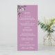 Färsk meny blommigt bröllop med en målad bukett med lavender, ro och laktor i det övre lämnat hörnet.Dessa blommigtar i eleganten, bröllop-menyer, är perfekt för vår eller sommar bröllop. Lavender symboliserar elegans och skönhet. Det är ett underbart färg att implementera i din bröllopsdag färg palett. Anpassa den med dina egna detaljer. Om du vill göra ytterligare anpassningar klickar du på länken "Anpassa" och användor verktyg som är utformat för att ändra mallen.