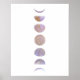 I måne beskrivs de olika faserna i söt av lavender och guld glitter mot en fast vit bakgrund.